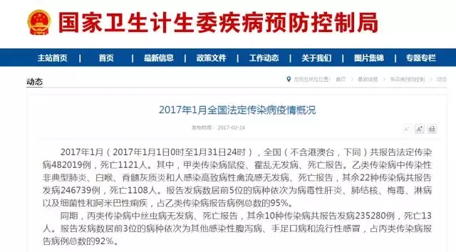 2月14日,国家卫计委网站公布“2017年1月全国法定传染病疫情概况”。数据显示,1月份全国“人感染H7N9禽流感”发病数为192,死亡数为79。与2016年12月份数据相比,2017年1月的H7N9疫情明显上升。